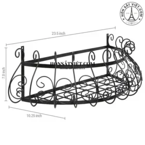 Được làm từ sắt mỹ thuật với lớp sơn tĩnh điện màu đen và thiết kế hoa văn cuộn trang nhã, sản phẩm không bao gồm chậu cây. Kệ treo tường không chỉ là một điểm nhấn trang trí mà còn tạo sự hỗ trợ vững chắc cho các chậu cây của bạn.